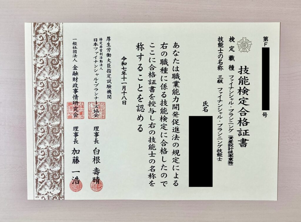 2025年10月 ファイナンシャル・プランニング技能検定3級 合格